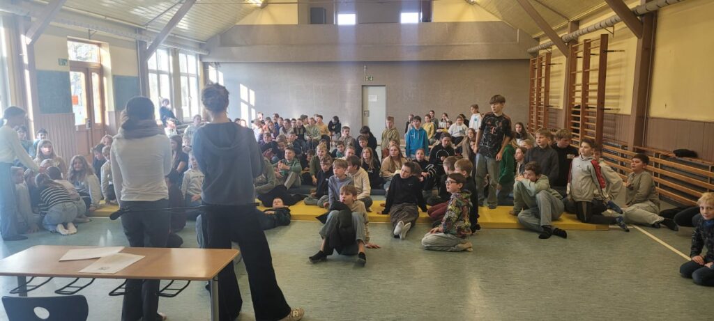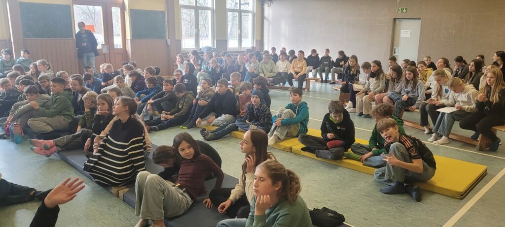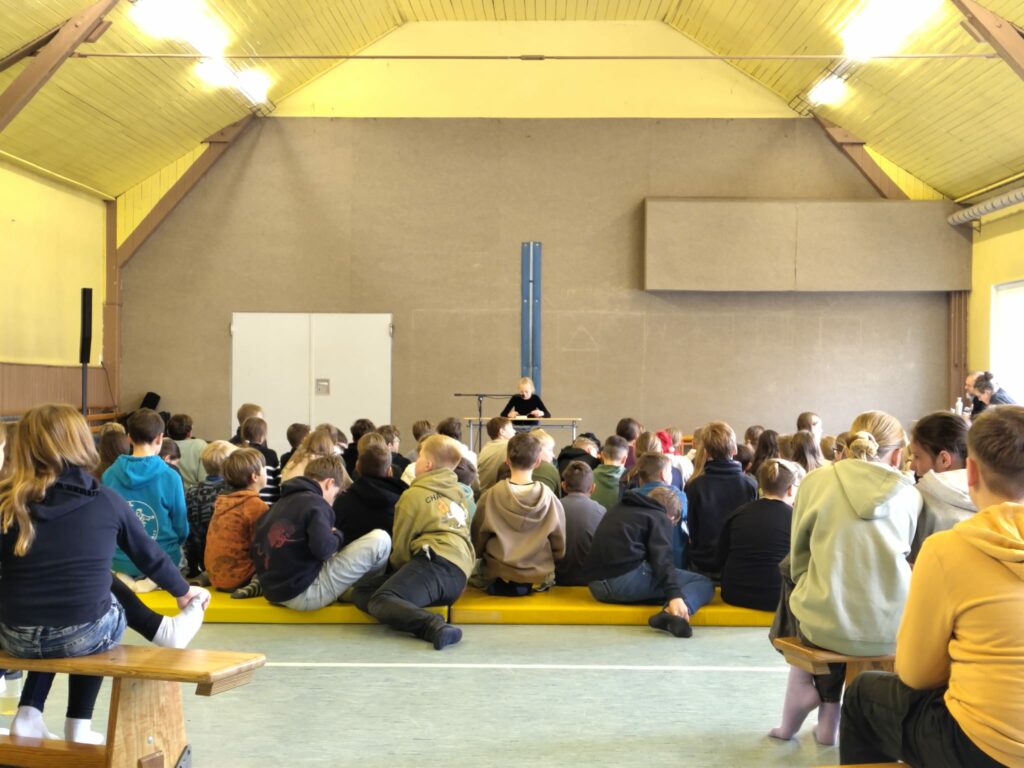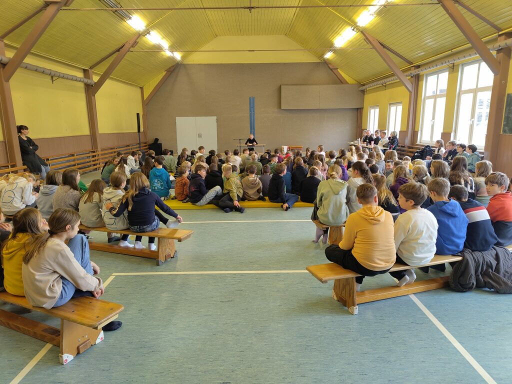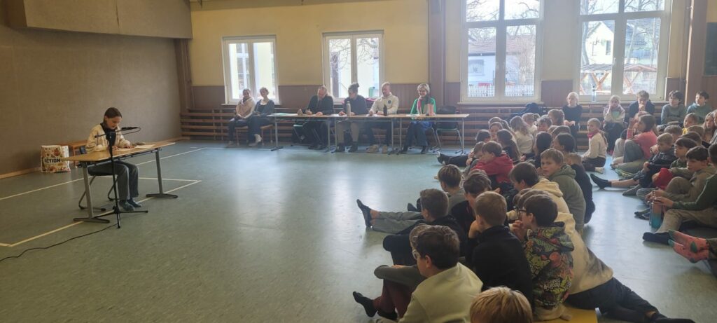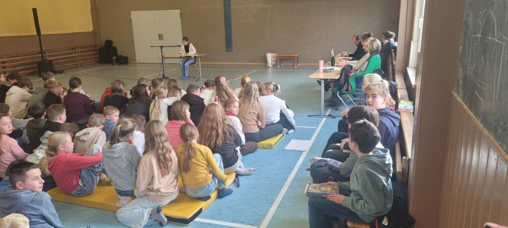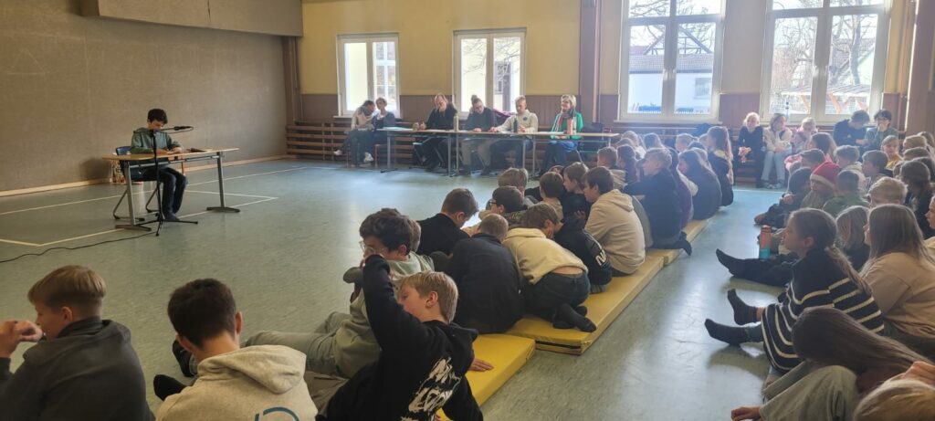 Am 4. Dezember versammelten sich die Schülerinnen und Schüler der 5. und 6. Klassen zum alljährlichen Vorlesewettbewerb in der Sporthalle in Apfelstädt. Schülerinnen und Schüler der 6. Klassen stellten ihre Lieblingsbücher und ihre Lesekompetenz unter Beweis. Unter tosendem Applaus gingen dabei Mattis Goldmann (1. Platz, 6c), Lotta Dörfler (2. Platz, 6a) und Johanna Fuchs (3. Platz, 6b) als Sieger hervor. Mattis hat sich damit für die nächste Runde im Vorlesewettbewerb in Gotha qualifiziert.