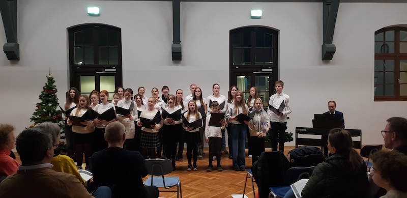 Der Chor der 5. und 6. Klassen eröffnete den Abend mit fröhlichen und modernen Weihnachtsliedern und sorgte für einen stimmungsvollen Auftakt. Anschließend präsentierte der Chor der 7. bis 12. Klassen ein vielfältiges Repertoire aus bekannten Filmmelodien und internationalen Klassikern. Auch der Lehrerchor trug mit bekannten Weihnachtsliedern zur festlichen Stimmung bei und zeigte eindrucksvoll, wie Musik Generationen verbindet. Besondere Höhepunkte waren der gemeinsame Auftakt und der Abschluss, bei dem alle 26 SängerInnen gemeinsam gesungen haben.